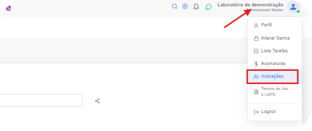 2. Clique no seu perfil e selecione a opção “Indicações”.